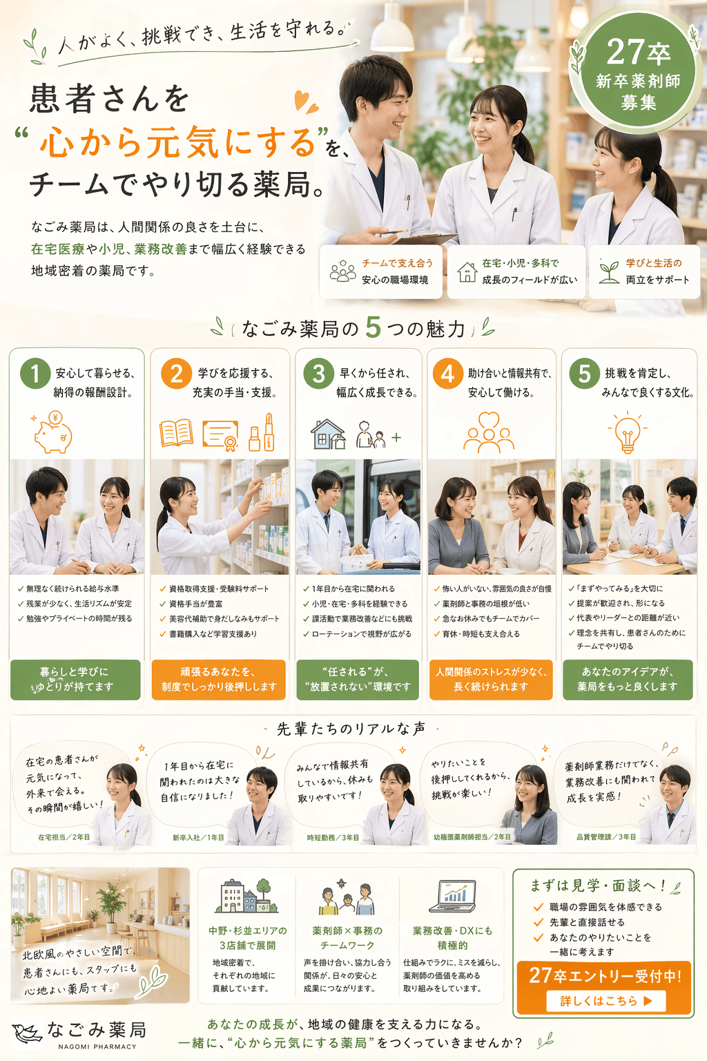 【2027卒・2028卒】薬学生向け|なごみ薬局の新卒採用|在宅・小児・地域医療で成長できる薬局